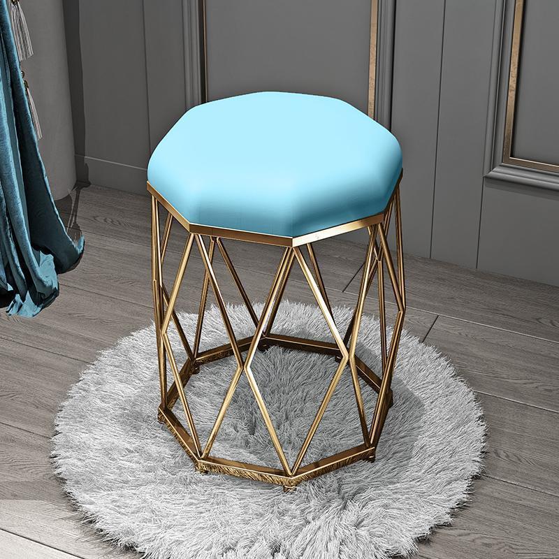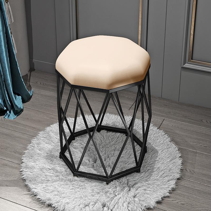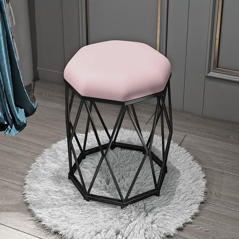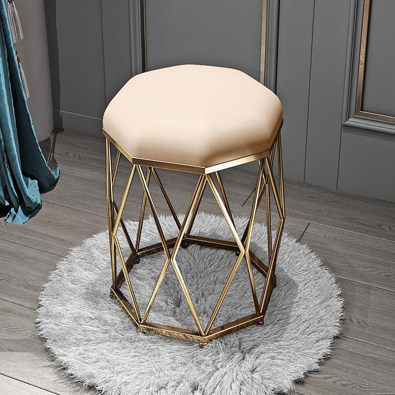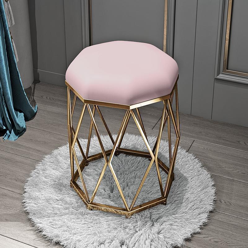 Light pink velvet + gold eight-angle stool