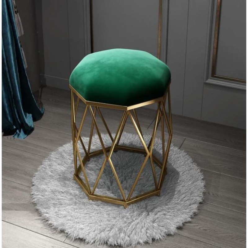 Velvet in墨绿 color + Gold octagonal stool