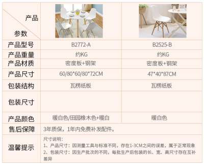 【主圖款】暖白色80*50*72cm【帶2張椅子】