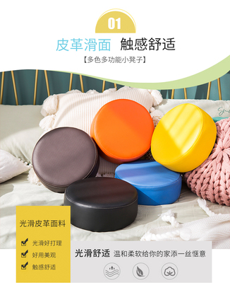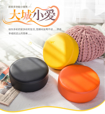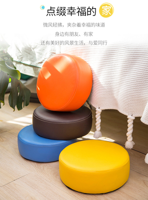 Small round and low tea table stool with sofa cushion – a stylish, trendy, and uniquely designed stool for living rooms and home use, perfect as a shoe-changing bench.