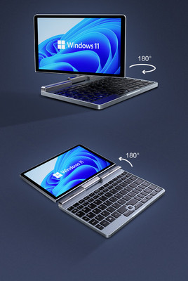 8-inch touchscreen 4-in-1 portable laptop with flip design, suitable for gaming, entertainment, and office use.