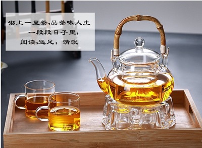 廠家玻璃茶壺復古竹子把提梁壺玻璃茶具加厚耐高溫水果紅茶壺花茶
