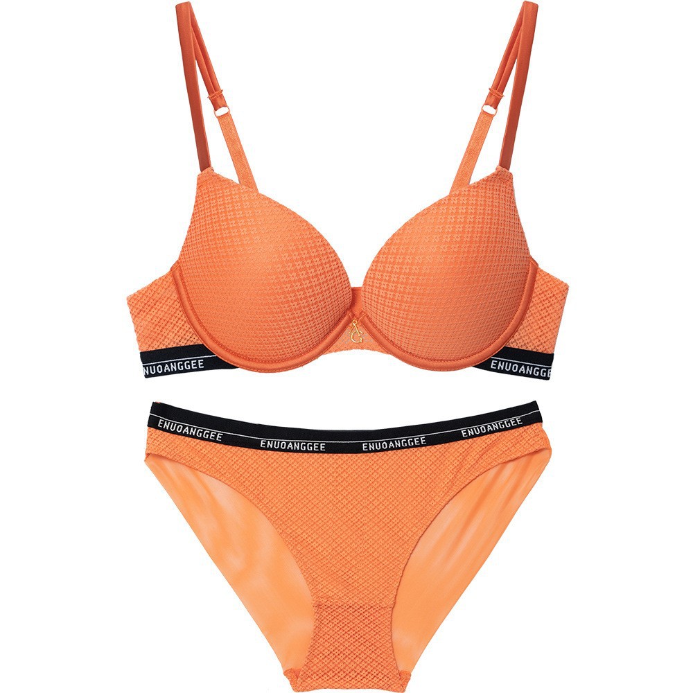 New Color-blocked Letter Sexy Bra with Push-up Design, Large Cup, Flared Bottom, Thin Top, Full Support Bra Set