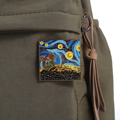 高檔設計梵高油畫系列金屬烤漆徽章創意藝術胸針服裝百搭小飾品