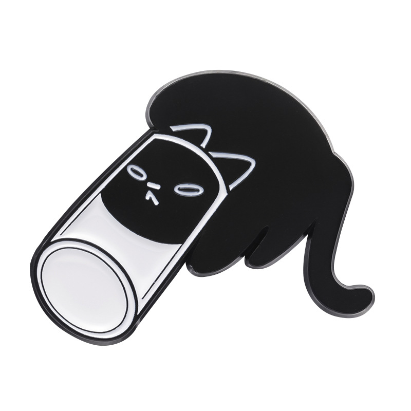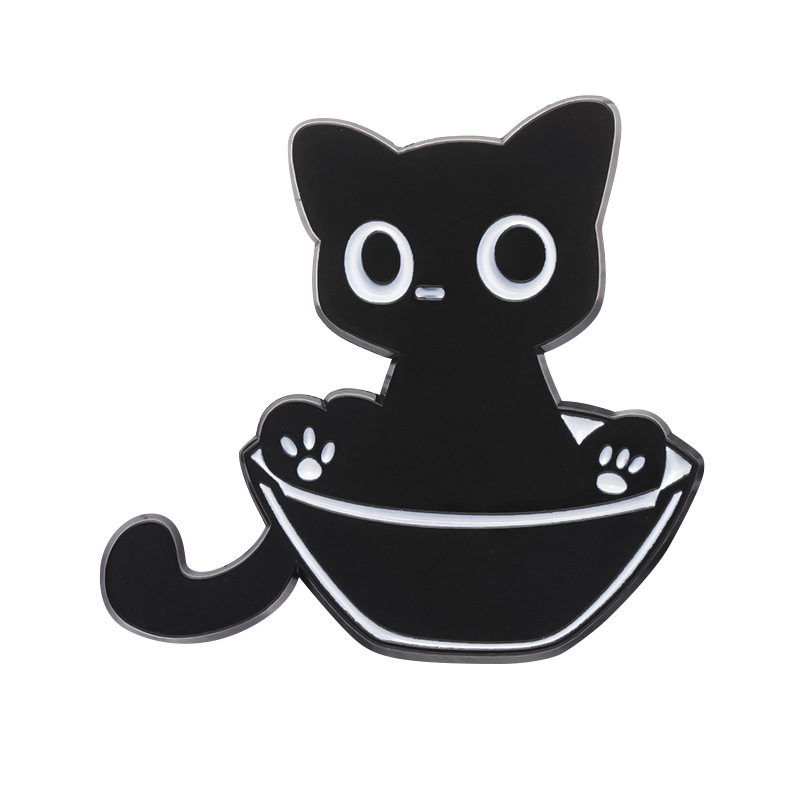 Adorable cartoon-style playful black cat design, niche and unique badge sweater jacket with personal fixed button pin gift