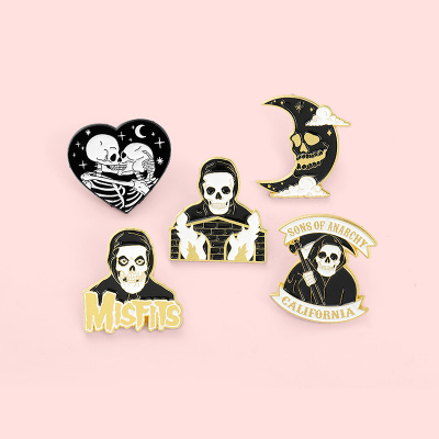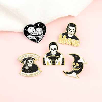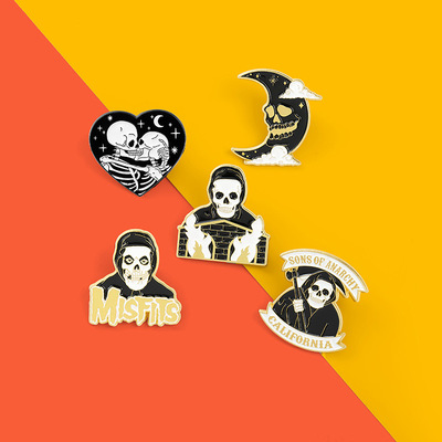 暗黑系搞怪骷髏頭萬聖節胸針配飾 英文字母愛心月亮人物造型徽章