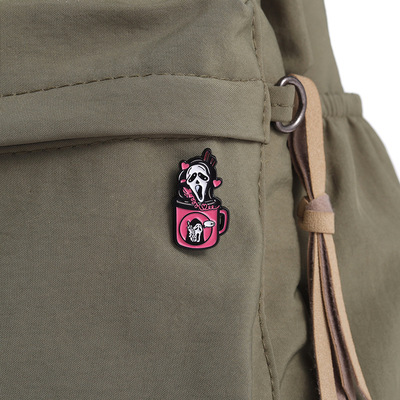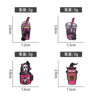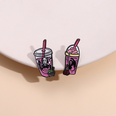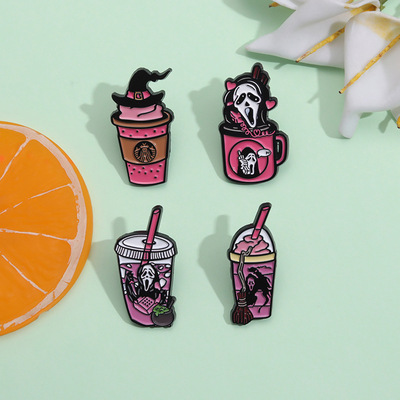 跨境新設計感恐怖骷髏頭創意奶茶杯飲料瓶造型金屬徽章萬聖節胸針