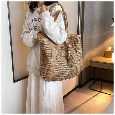 簡約大容量輕便編織水桶沙灘包女包潮2024新款春季手提單肩包