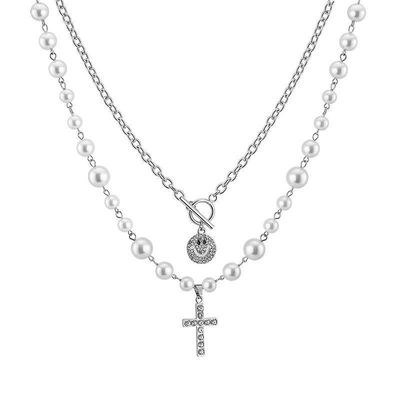 珍珠十字架笑臉項鍊