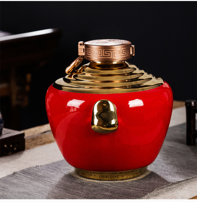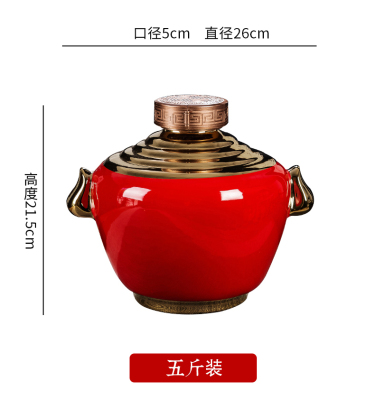 A 5 jin red Zhuangyuan jar with gold-plated〈table bottle.