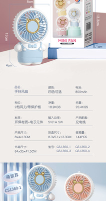 2024 New Cartoon Handheld Small Fan Portable Electric Fan High-Quality USB Handheld Fan June 1st Gift
