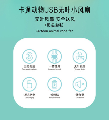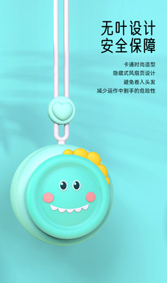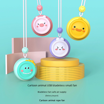 Cute and Fun Neckband Small Fan, Blowing Air Without Blades, Charging Fan, Portable, Compact, Mini, Children's Cartoon Handheld with Lanyard