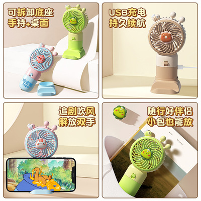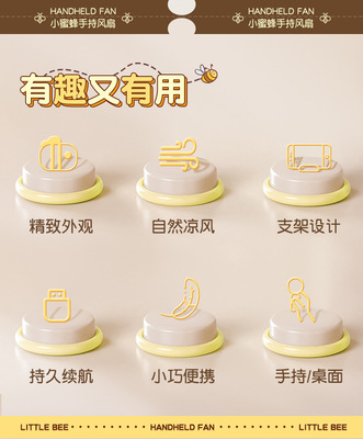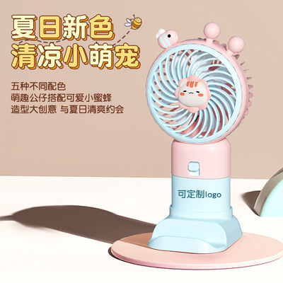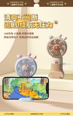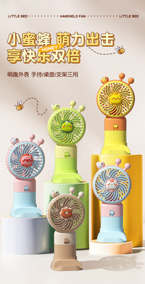 New Product Cartoon USB Charging Tripod Handheld Small Fan Cute Bee Long-Lasting Battery Cross-Border Desktop Fan