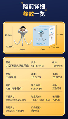 New Octopus Baby Space Disc Fan for Car with 3 Speeds, Child-Friendly Bladeless USB Fan as a Gift