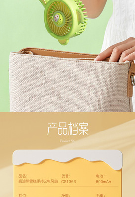 新品泰迪珍藏手持風扇USB充電風扇戶外旅行學生禮品廠家直銷