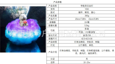 Children's Creative Gift Resin Astronaut Ornament White Cloud Lamp Remote Control Night Light USB Bedside Lamp