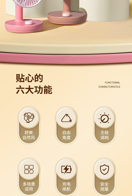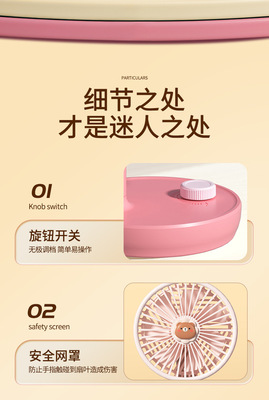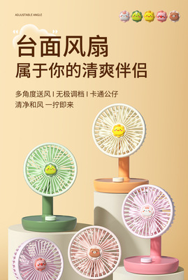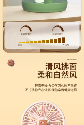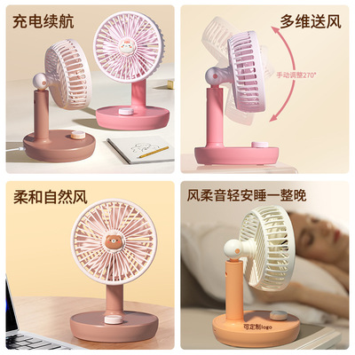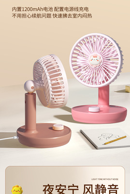 New USB Fan with Rechargeable Function, Student Dormitory Desk Fan Gift Portable Tower Fan with Cartoon Style High Wind Force