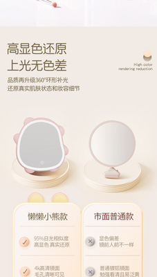 Lazy Bear Mirror with LED Lighting, Home Vanity Mirror, Desk Vanity Mirror for Dorms, Makeup Mirror with LED Light for Girls
