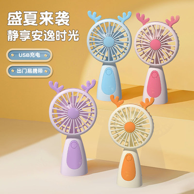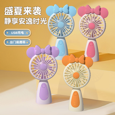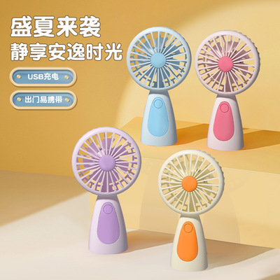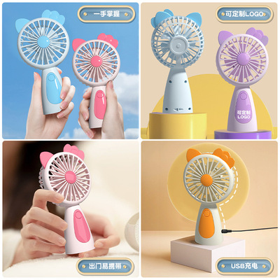 2024夏季新款手持風扇 便攜式學生桌面手拿USB可充電迷你風扇帶燈