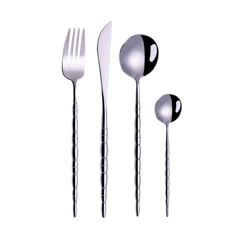 新款珠點304不鏽鋼創意餐具套裝酒店家用金色牛排刀茶勺四件套