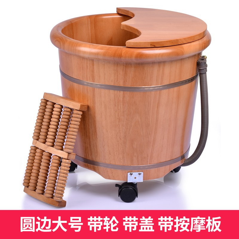 I6CV foot bath bucket wooden bucket with wheels massage foot bath wash foot wooden basin wooden basin over calf oak wood with pulley household