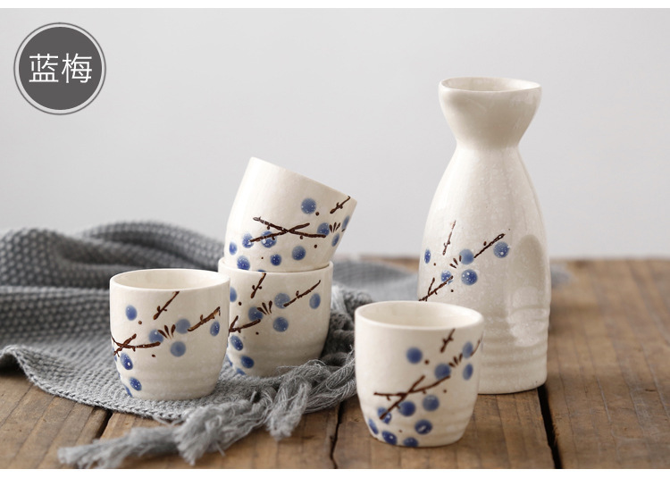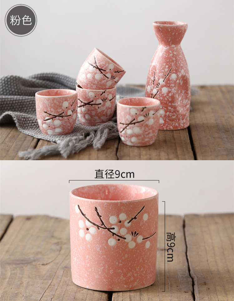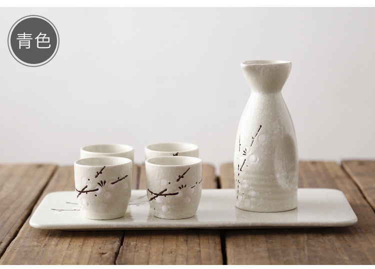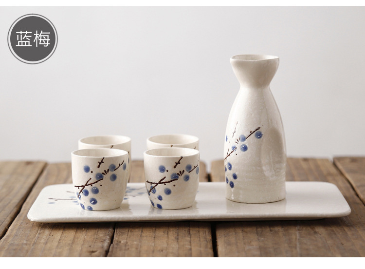 Red Plum Wine Set with 1壶4 cups and 1 Sushi Plate