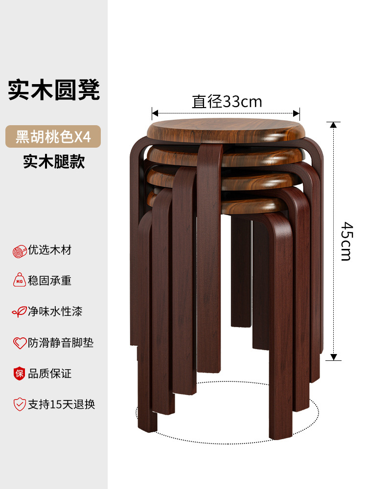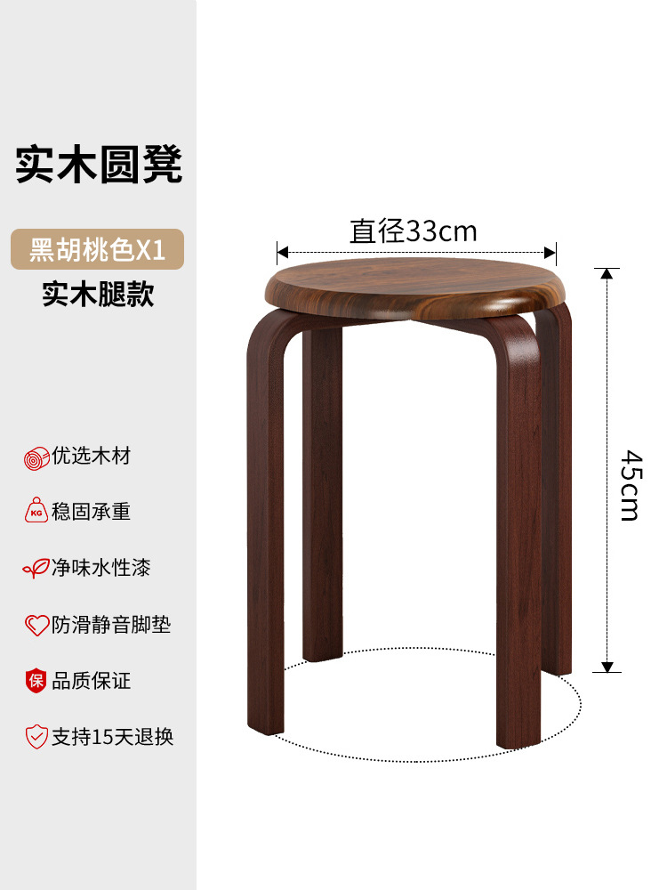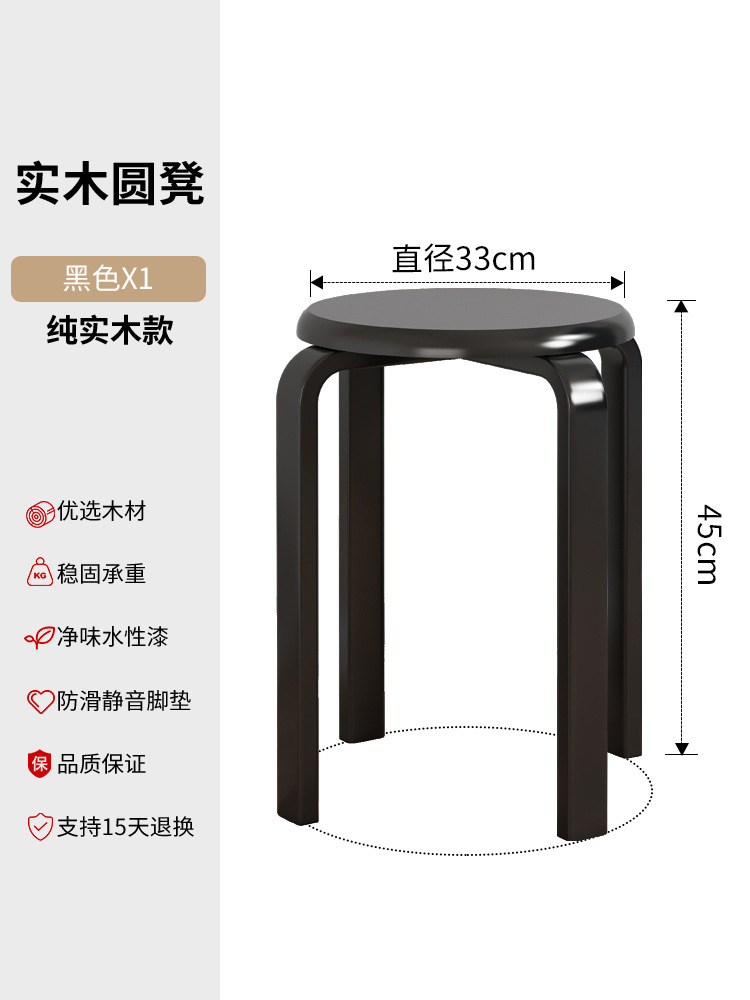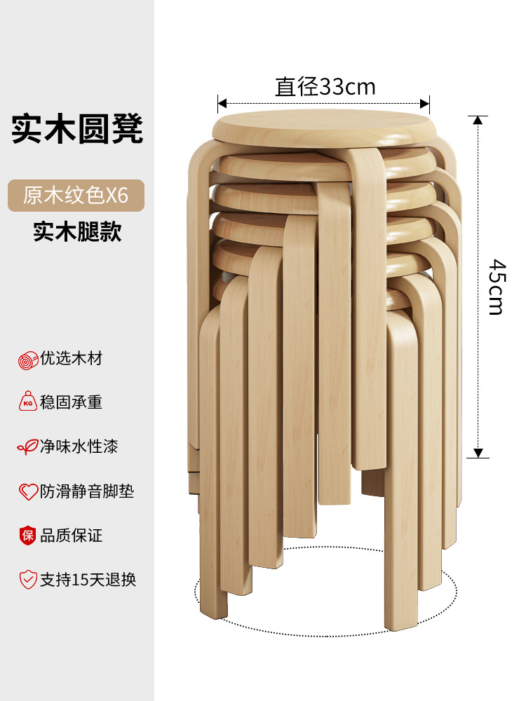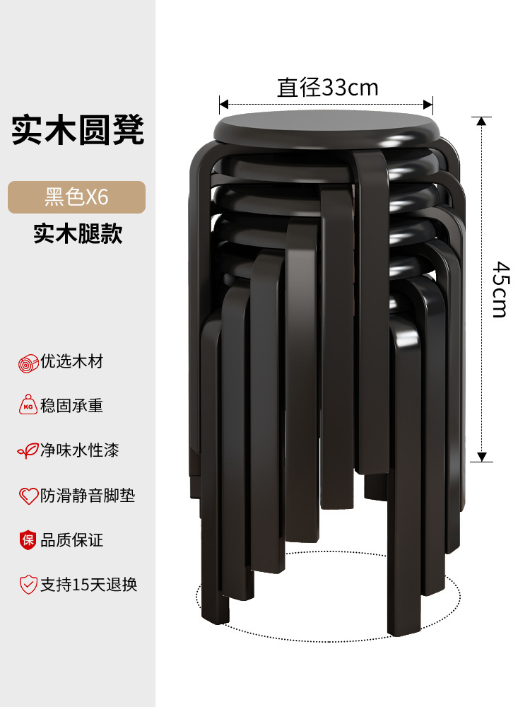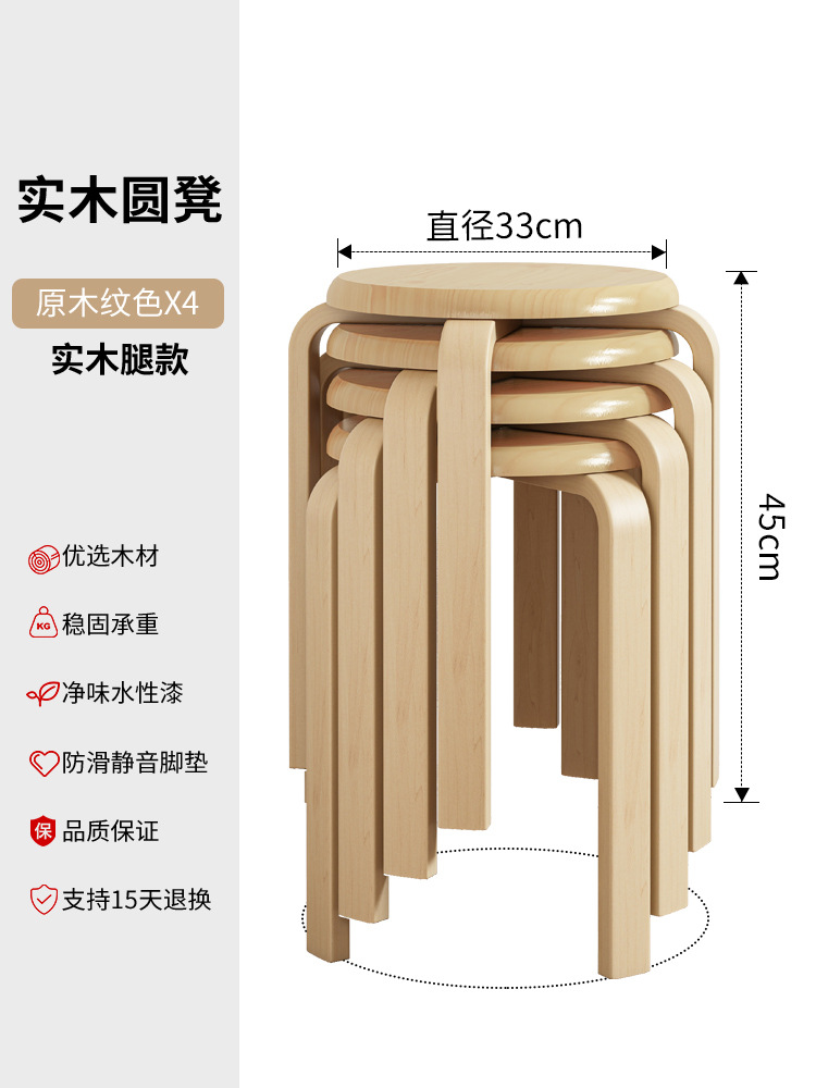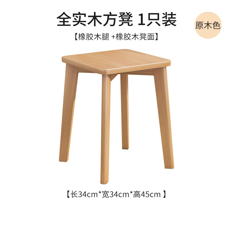 實木凳子圓凳可疊放家用矮凳木頭板凳現代簡約餐桌凳客廳加厚方凳