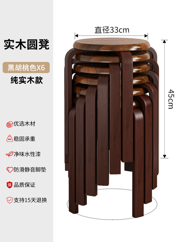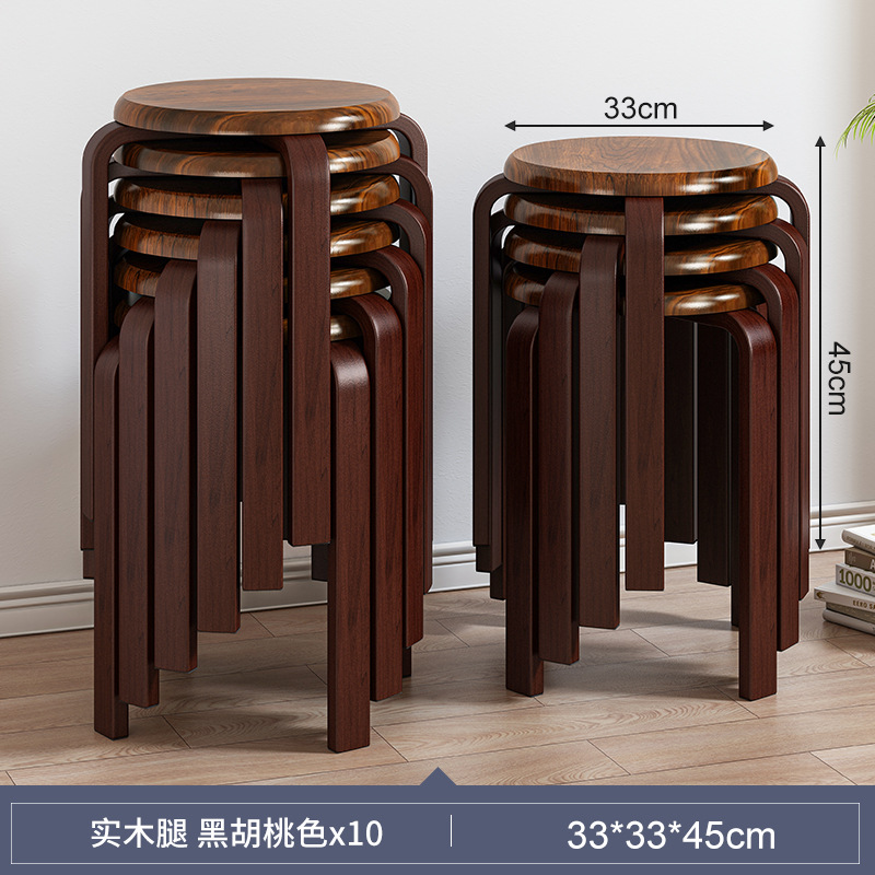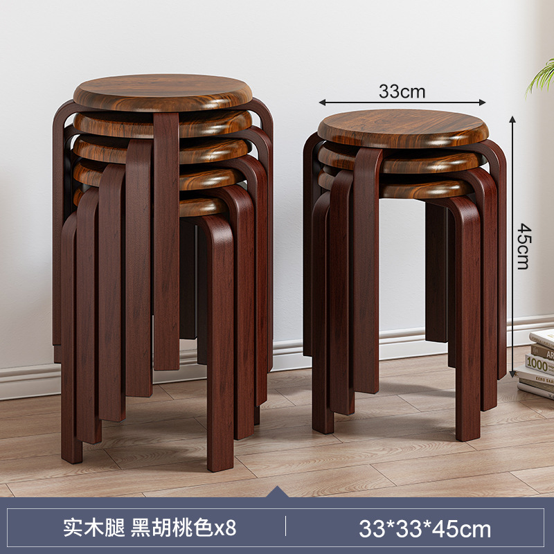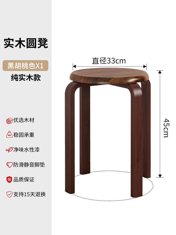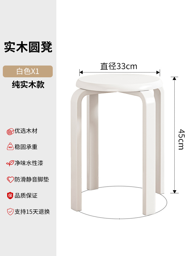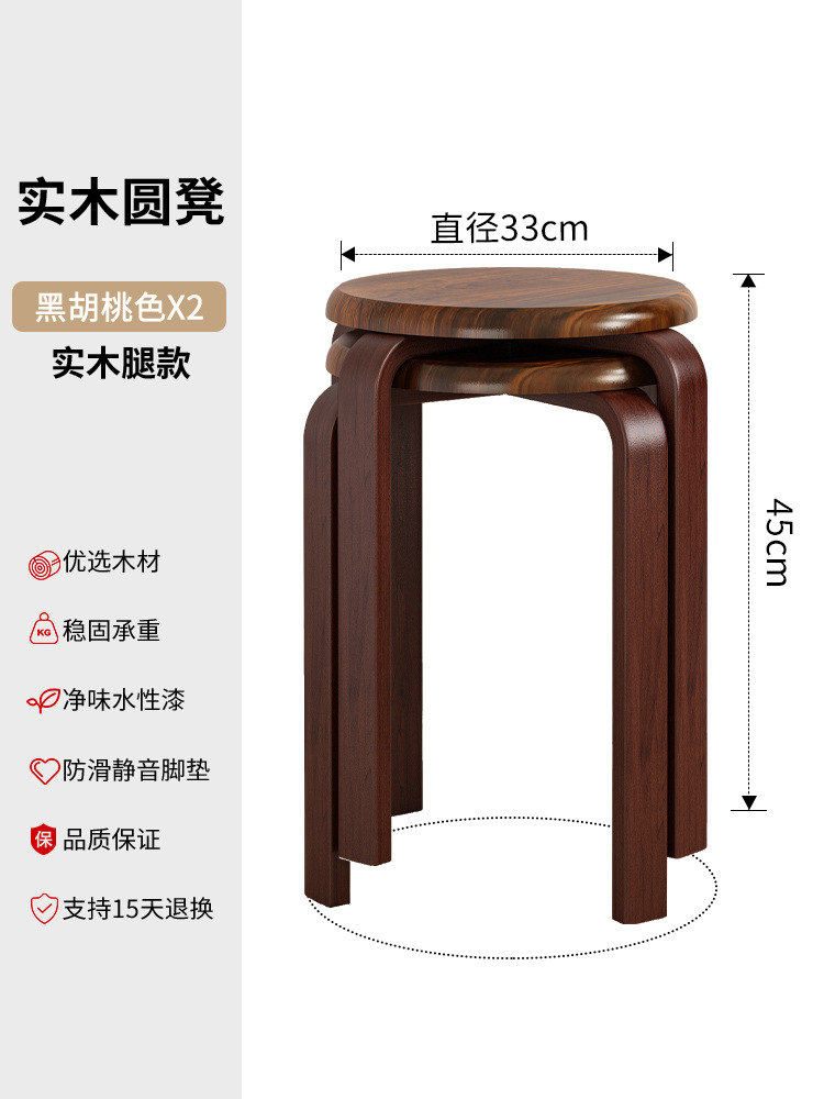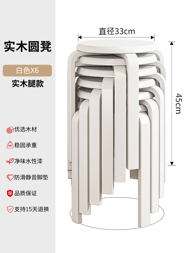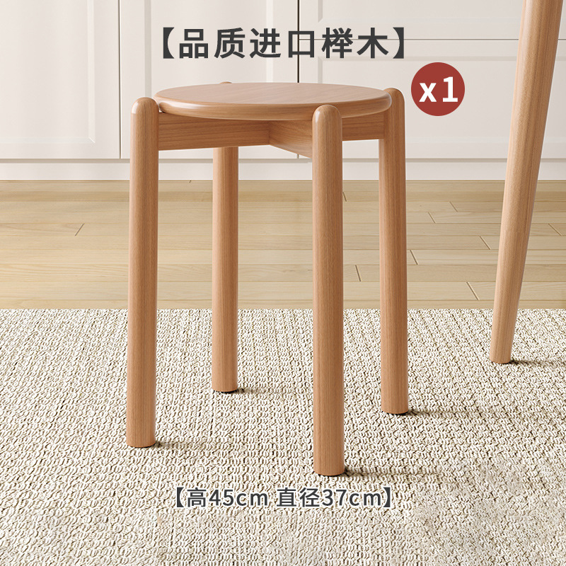 實木凳子圓凳可疊放家用矮凳木頭板凳現代簡約餐桌凳客廳加厚方凳