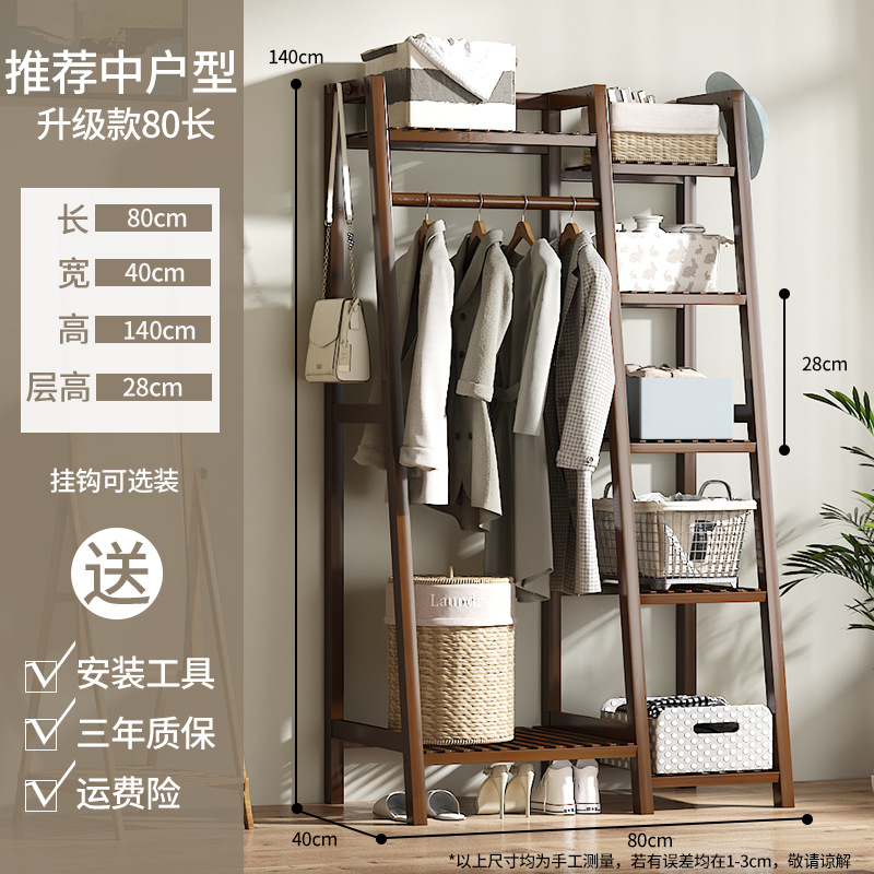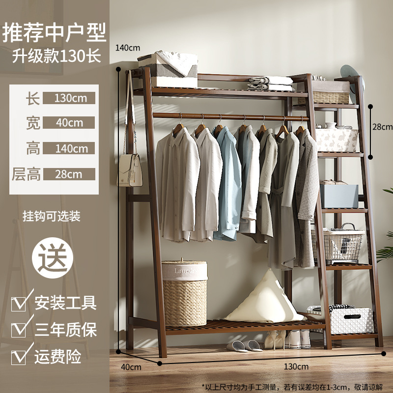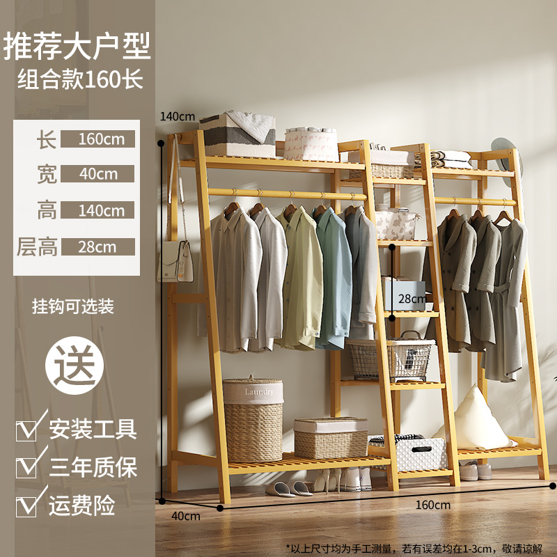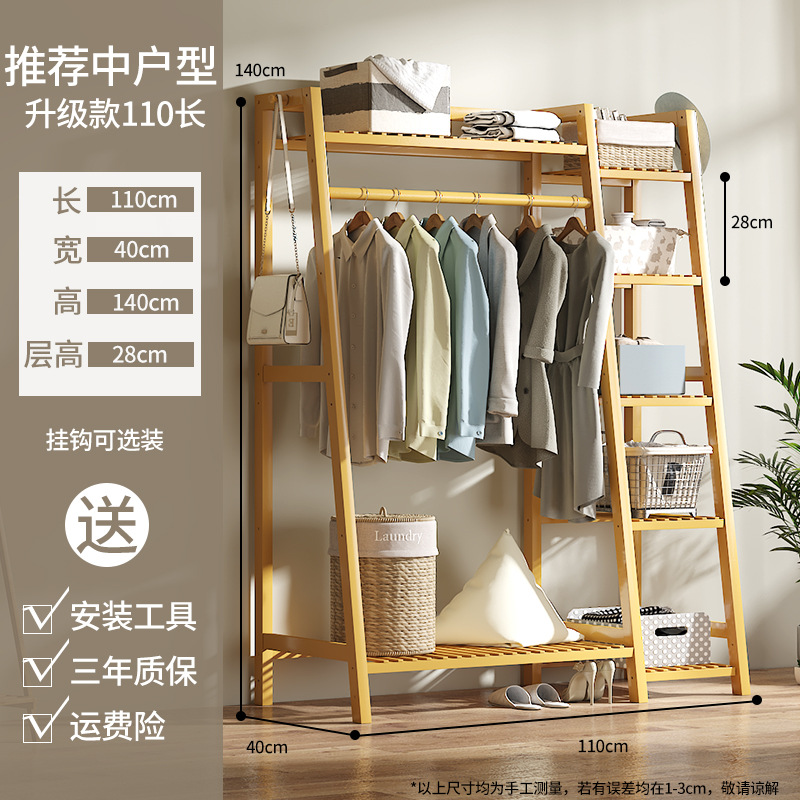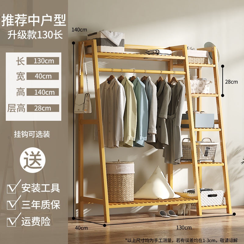 Floor-mounted coat rack, indoor bedroom, solid wood, household, simple bamboo wardrobe hanger, drying clothes, durable, clothing hanger