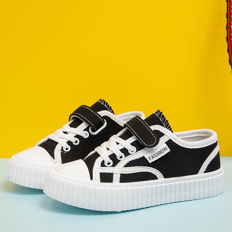 Children's Black Canvas Shoes 2024 Spring and Autumn New White Girls' Board Shoes Summer Breathable Student Boys' Small White Shoes