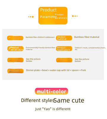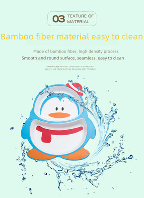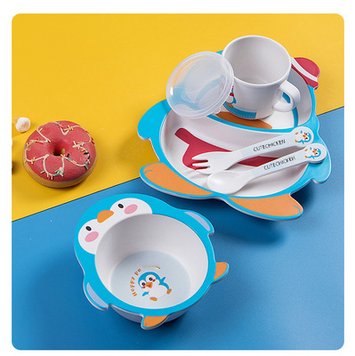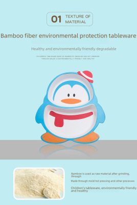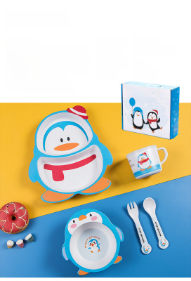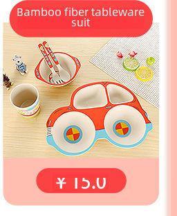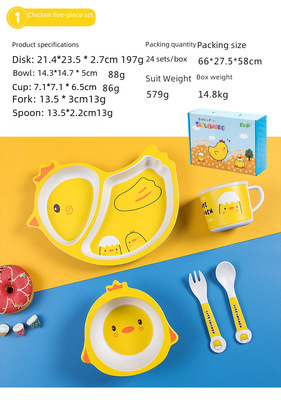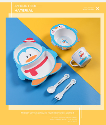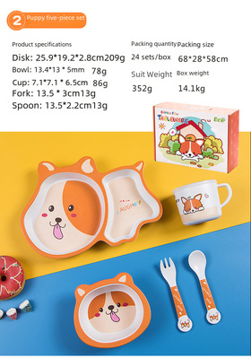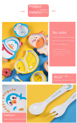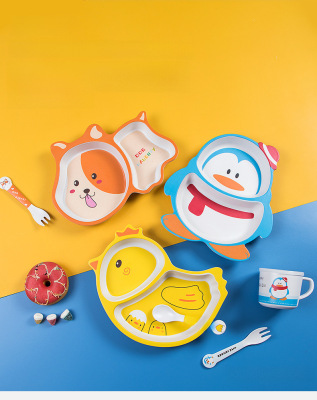 New cartoon bamboo fiber children's tableware set, household baby divided plate, small child complementary food bowl, spoon and fork