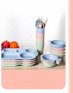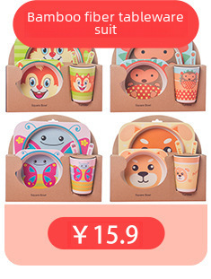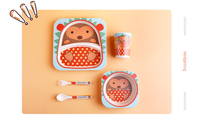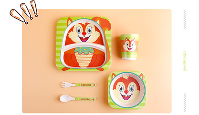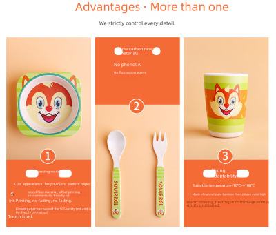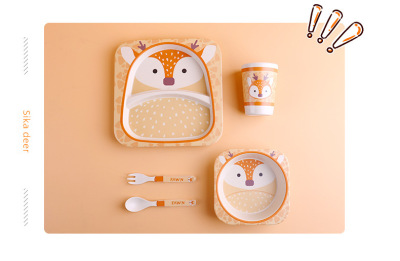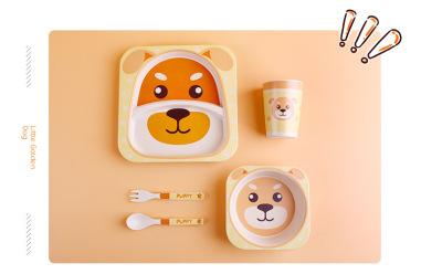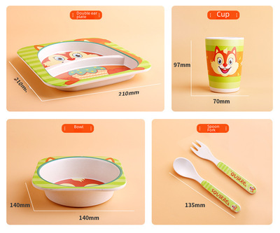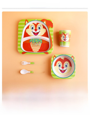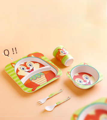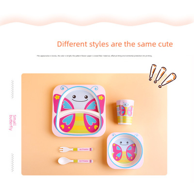 Creative Eco-friendly Bamboo Powder Bamboo Fiber Children's Tableware Set Five-Piece Set Kindergarten Baby Cartoon Divided Bowl Plate