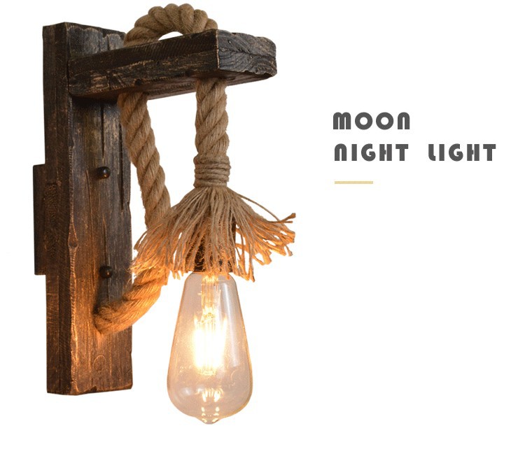Antique Shipwood Restaurant Wall Lamp, Loft Industrial Style Retro Bar Café Corridor Nostalgic Wooden Wall Lamp