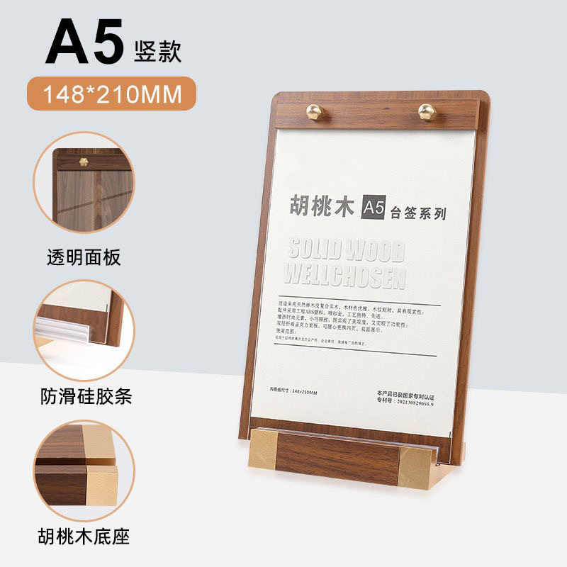 Walnut table card display menu A4 standing price tag wooden standing sign display stand milk tea table