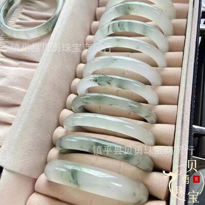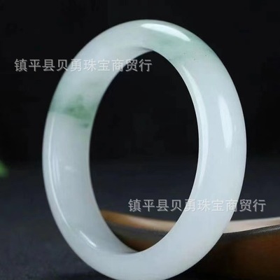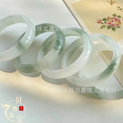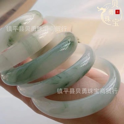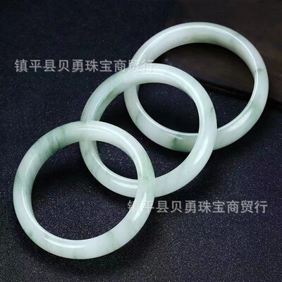 Snow Jade Natural Xinjiang Tianshan Jade Ice Jade Real Gold Thread Jade Round Bracelet, Fortune-Bearing Flat Bar, Versatile Non-Jade Bracelet