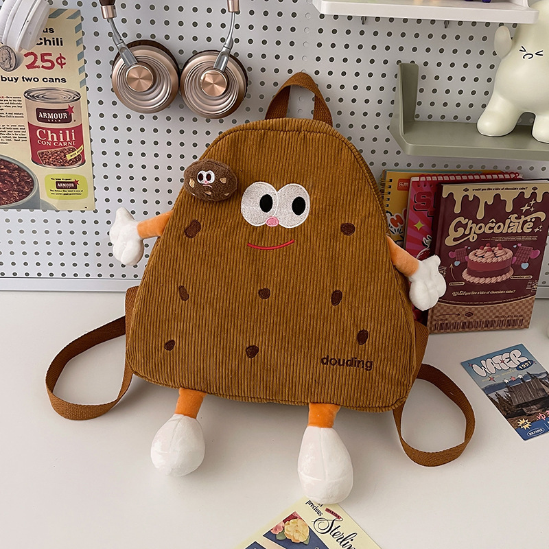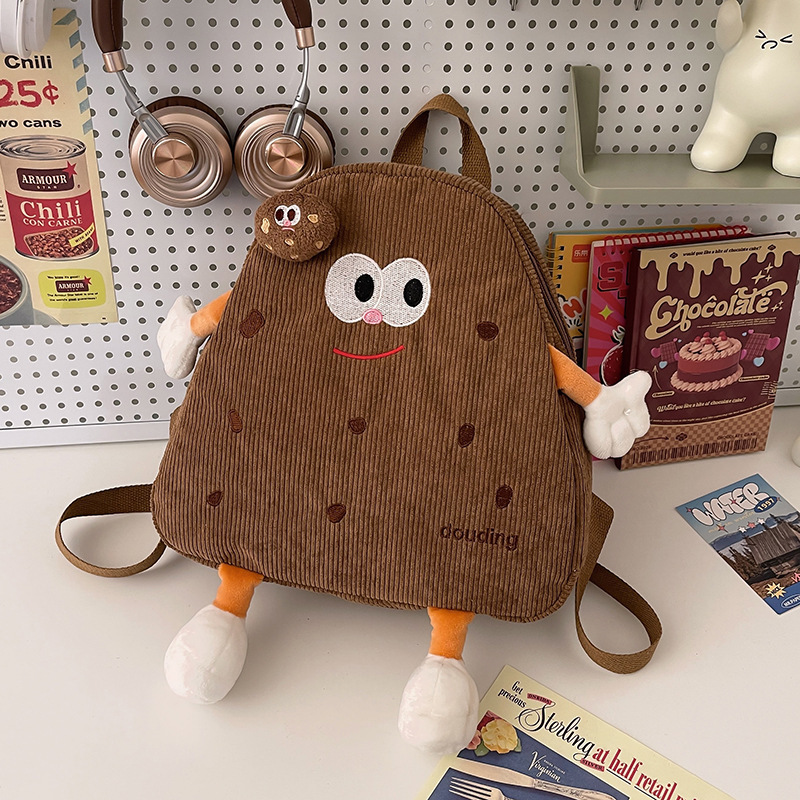 兒童包韓國可愛餅乾大容量雙肩包卡通大眼睛燈芯絨背包出街旅行包