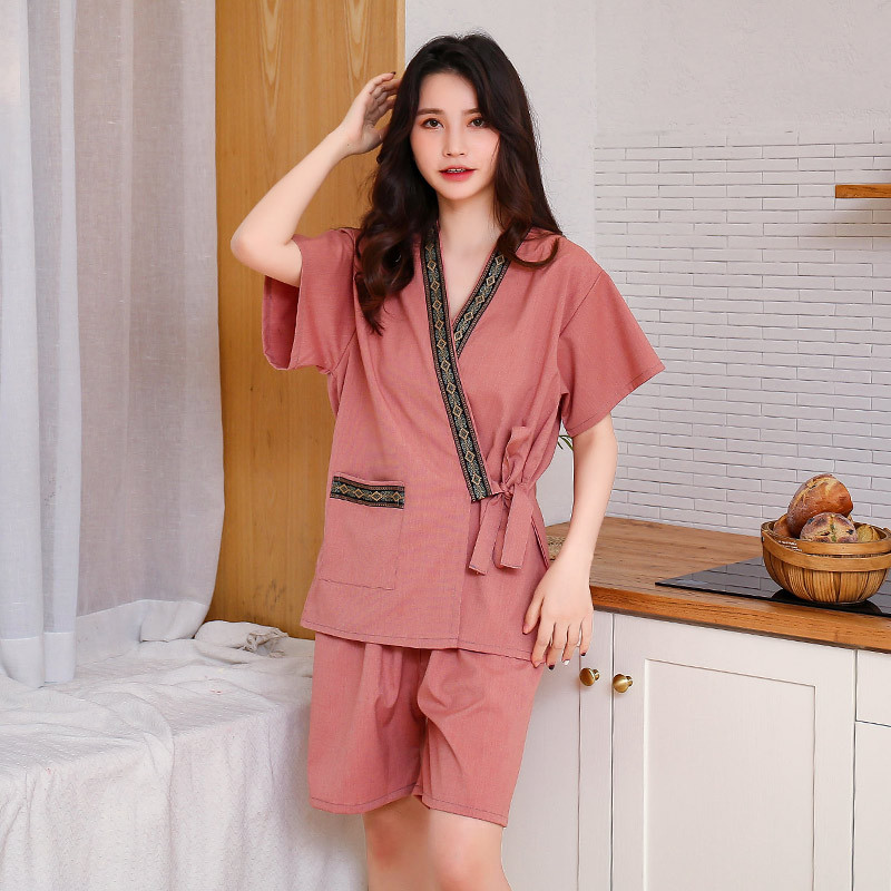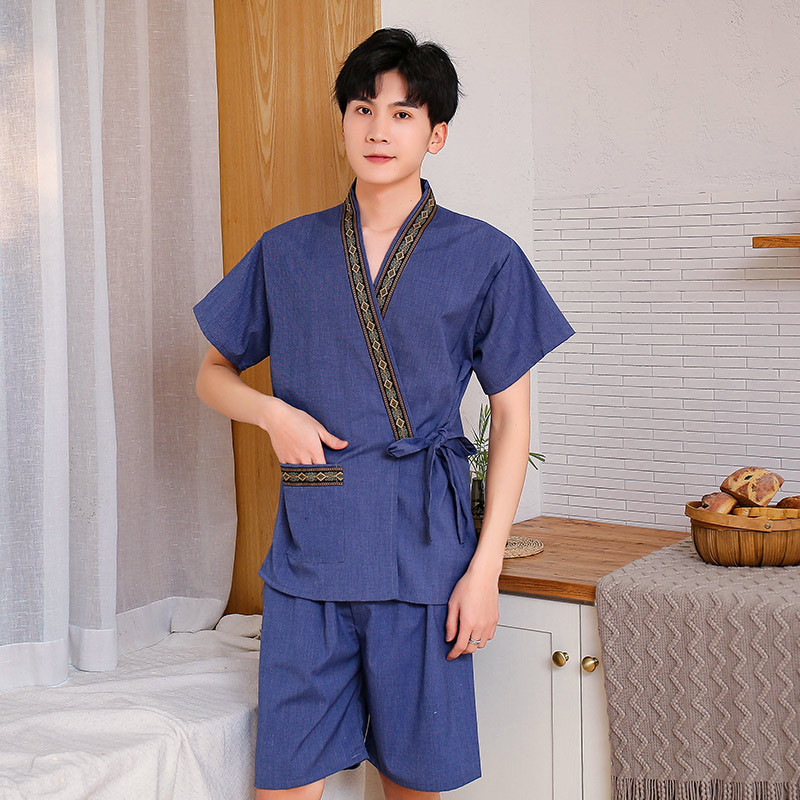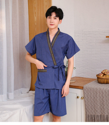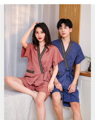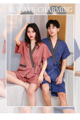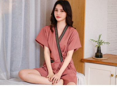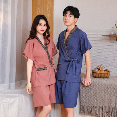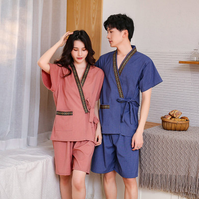 Women's Sweat Suit Men's Open Knit Couple's Cotton Bath Suit Massage Han Steam Sauna Suit Ramie Foot Therapy Suit