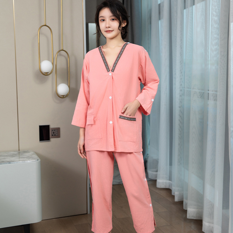 棉布前後開衫情侶男女長袖長褲兩側開叉艾灸服推拿服按摩服肩袖開