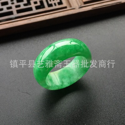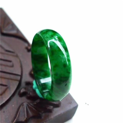 Green Jade Ring with Dragon Design, Floating Flowers, and Burmese Emeralds for Both Men and Women