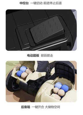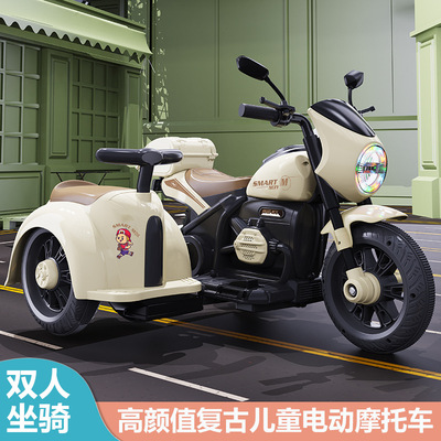 Light brown two-drive motorcycle + sidecar + 7A large battery + remote control