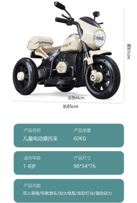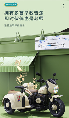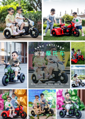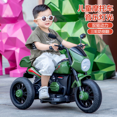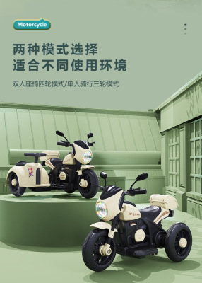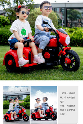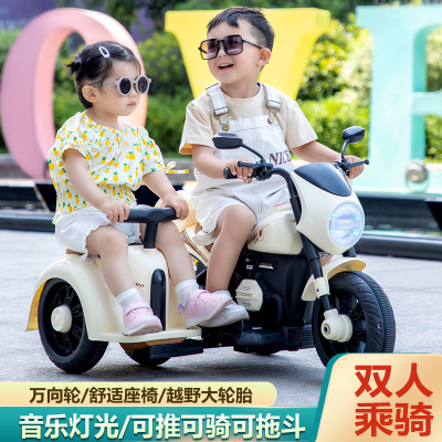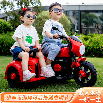 Children's Electric Motorbike Three-Wheeled Bike for Boys and Girls, Baby Electric Scooter, Dual-Sitting, Charging Remote Control Toy Car