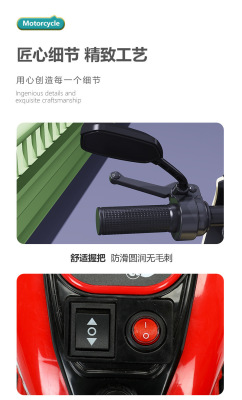 Red Double-Drive Motorcycle with Sidecar + 7A Large Battery + Remote Control