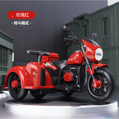 Rose Red Dual-Drive Motorcycle + Sidecar + 7A Large Battery