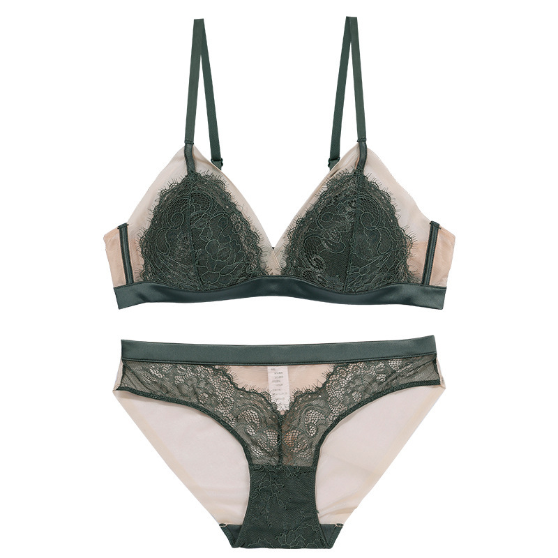 New European and American sexy bra set girls underwear lace bra no rims French triangle cup thin bra
