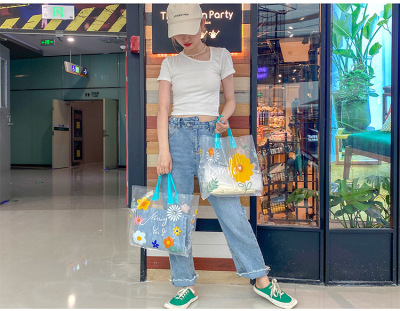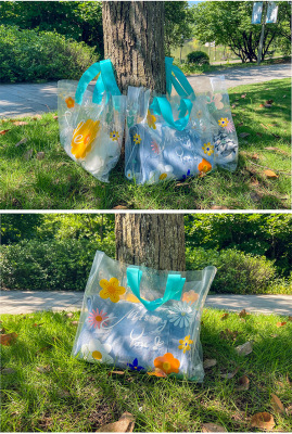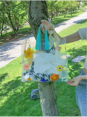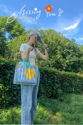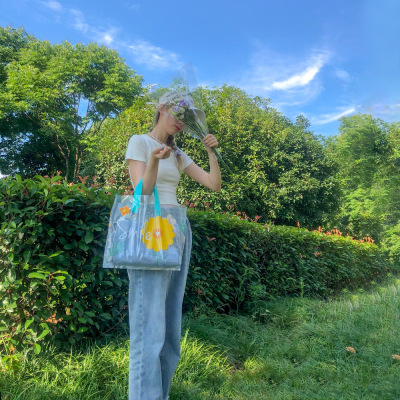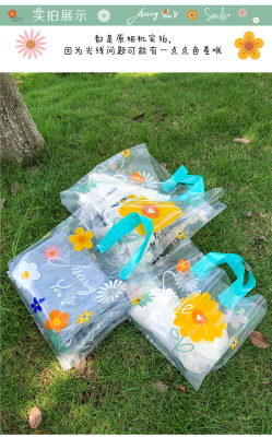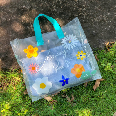 New style transparent flower handbag clothing store bag gift bag high-end plastic bag packing bag fresh and clean bag