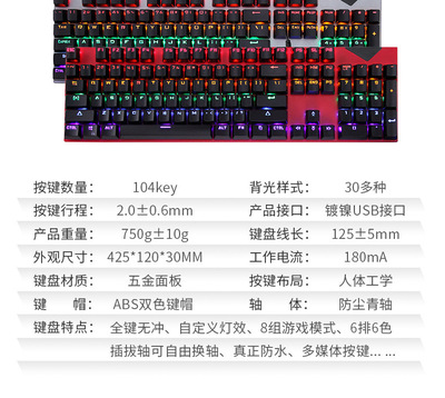 柏戰K20青軸機械鍵盤 混光機械鍵盤青軸電競網吧遊戲鍵盤電腦鍵盤
