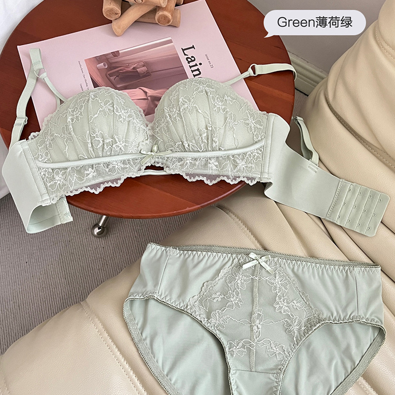 Original strapless bra sweet lace small chest gathering half cup girl bra set latex AA cup bra