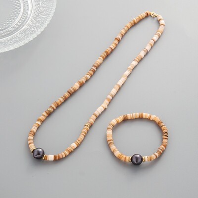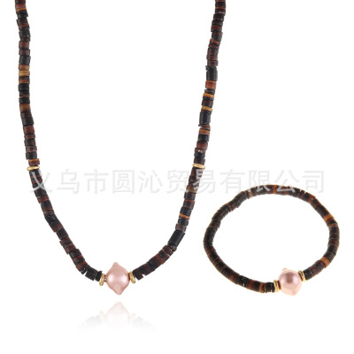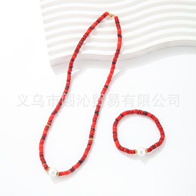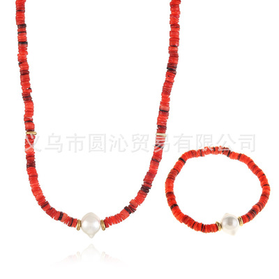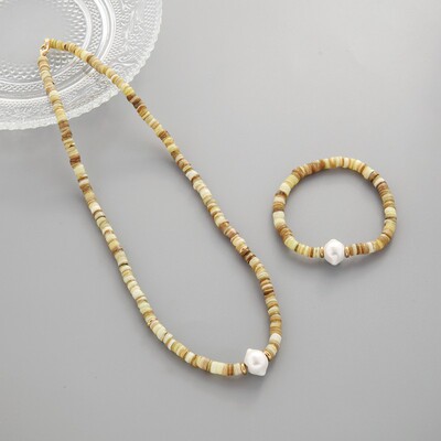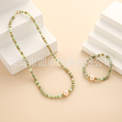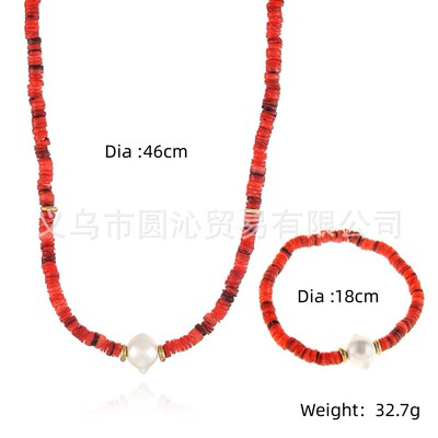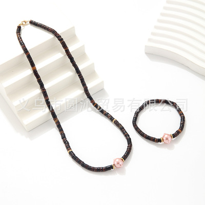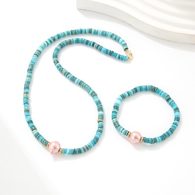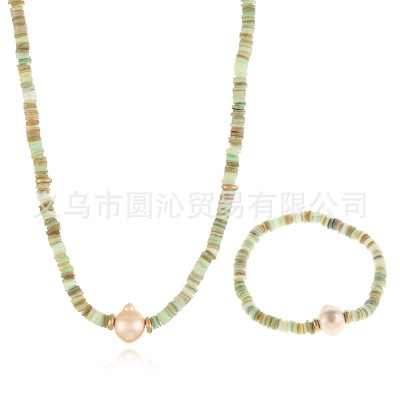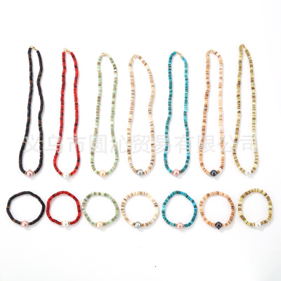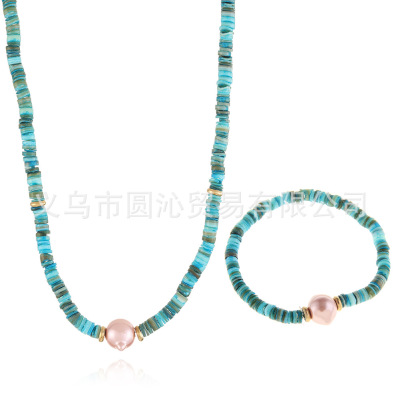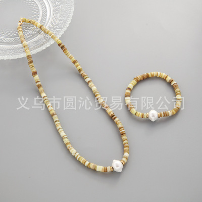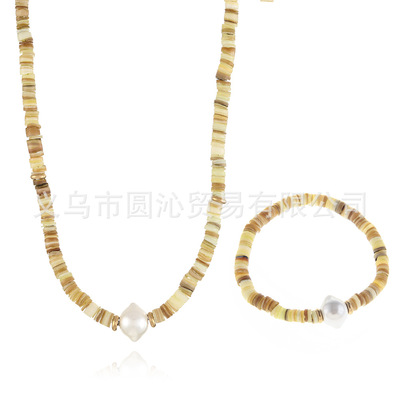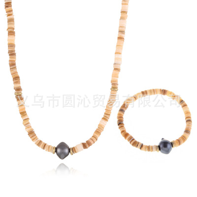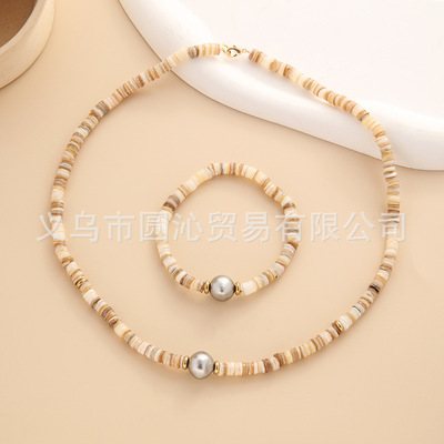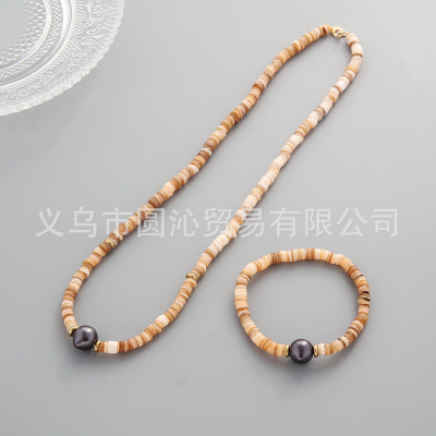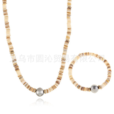 跨境歐美細款貝殼串珠項鍊手鍊飾品套裝小眾仿珍珠毛衣鏈首飾批發