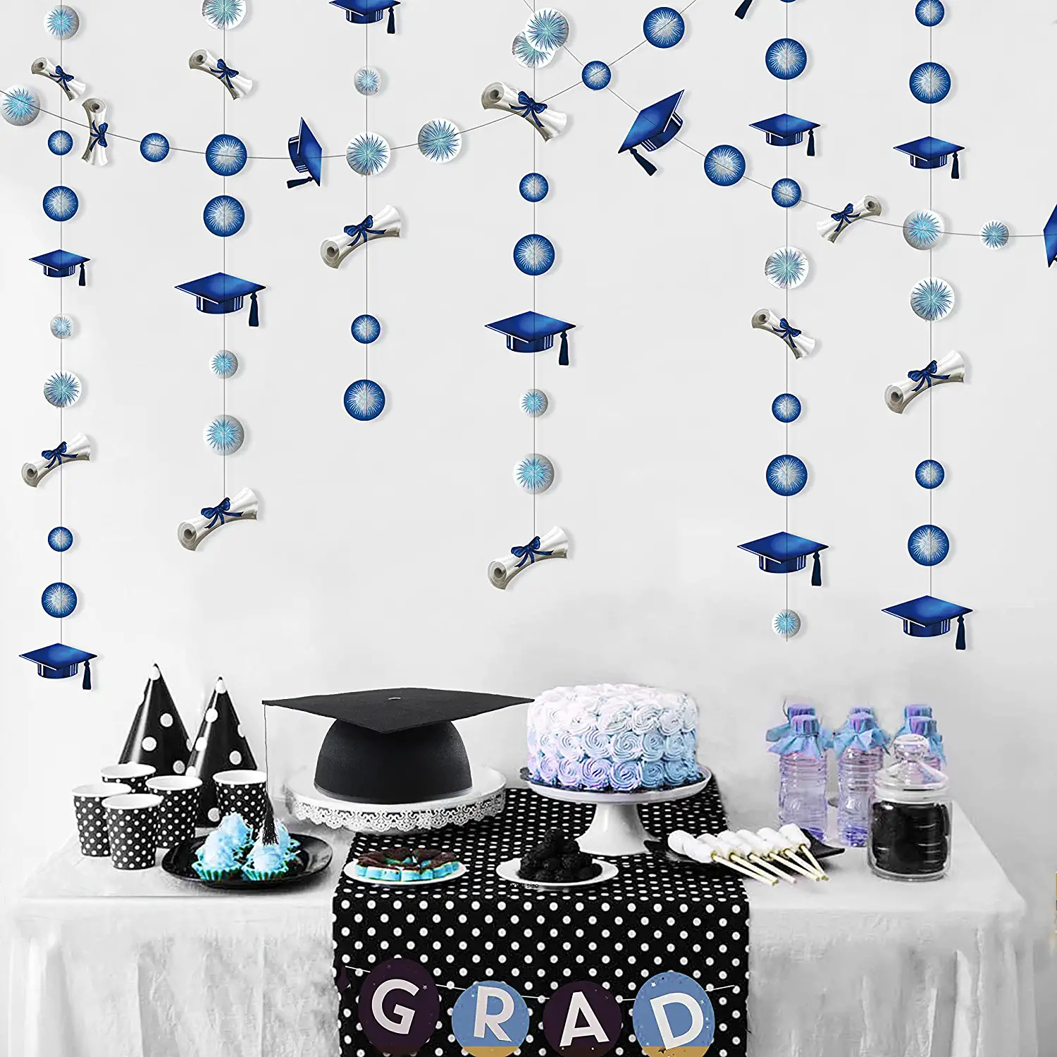 6 pieces 2.4-meter green, red, and blue graduation paper garlands, flags for graduation party decoration and arrangement supplies