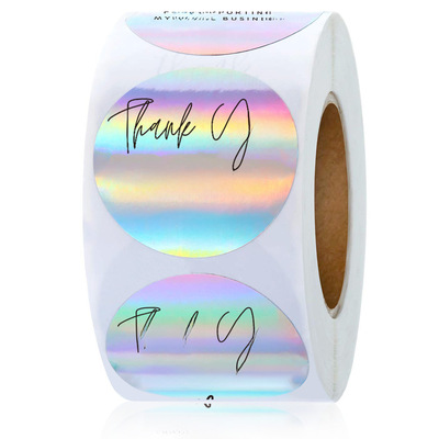 500/roll 3.8/2.5cm roll rainbow laser commercial decorative sticker labels, thank you for your purchase